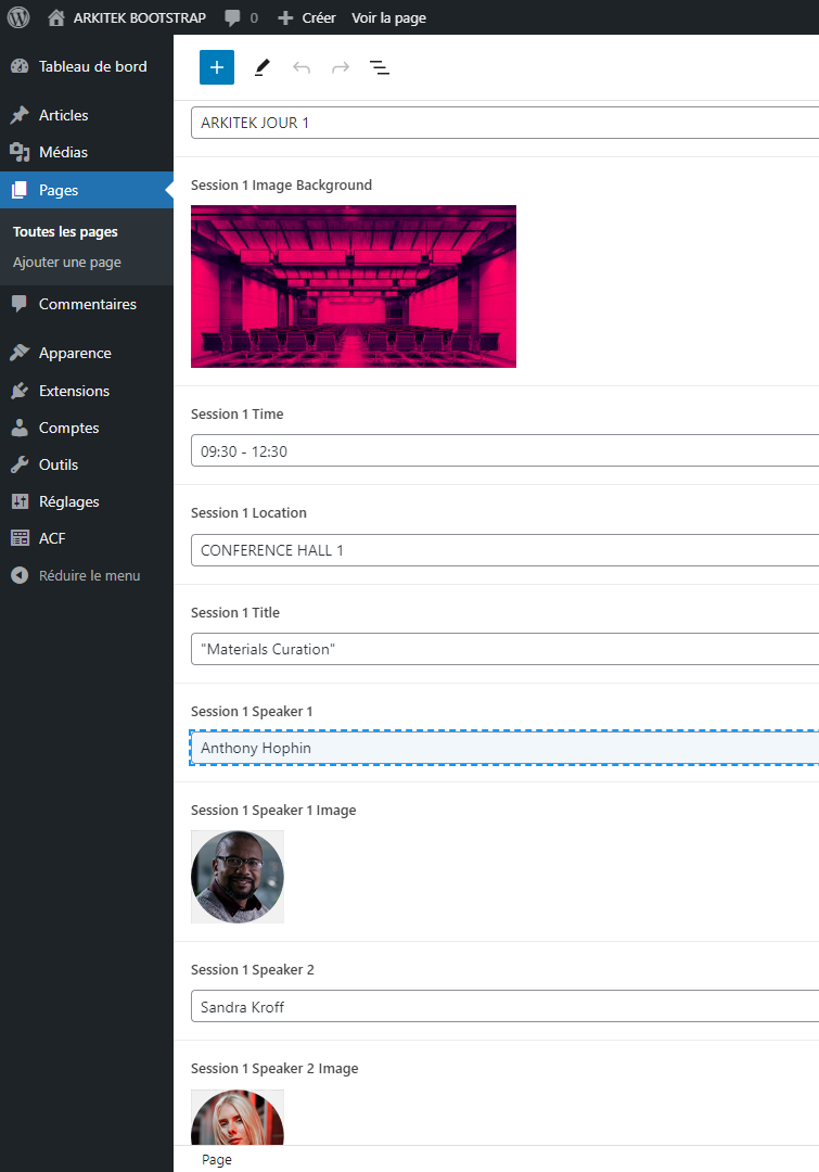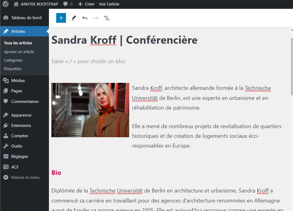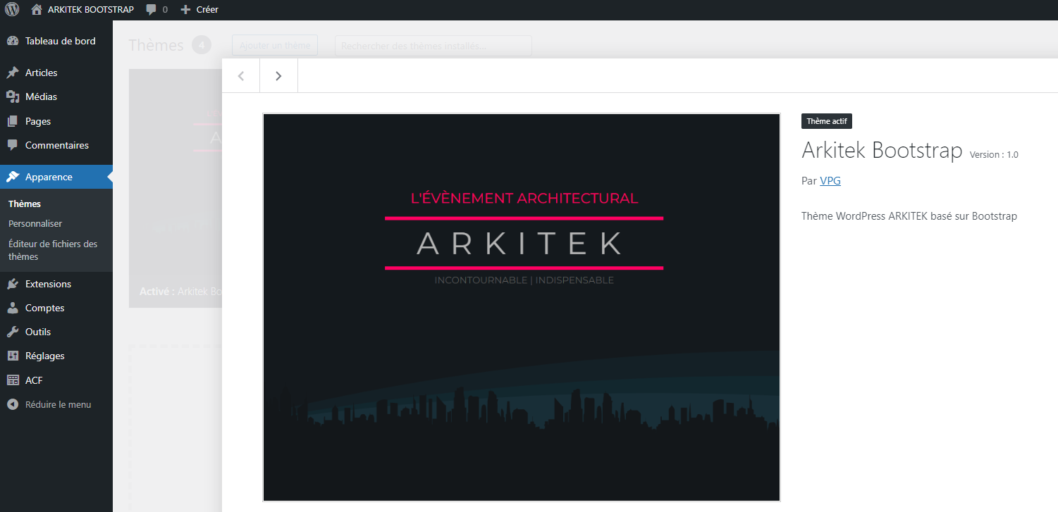 Le projet utilise Bootstrap 5.2 en front et Wordpress en back