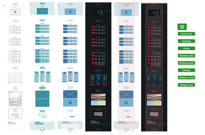 Les 2 boutons ci-dessous permettent d'accéder aux pages web version Scketching et Wireframe